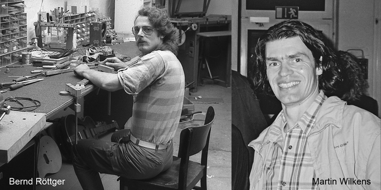 Die Arbeit wurde immer mehr und alsbald fing Bernd Röttger als Reparateur und Assembler bei uns an, der gleich als ersten Gewaltakt eine äußerst dekoratives Gitarrenpodium in unseren Showroom setzte. Danke, Bernd! Und Martin Wilkens, gelernter Tischler machte sich bestens in der Halsfertigung.
